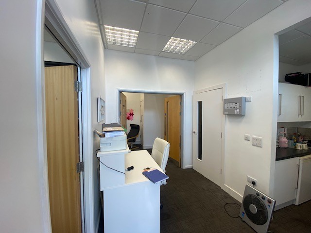 Within a six storey mainly modern residential block with commercial uses at ground level built circa 14 years ago. The unit has a glazed frontage and is subdivided within to provide a reception, two separate offices/rooms disabled spec. WC and kitchenette. Heating is via gas fired radiators and air circulation system.