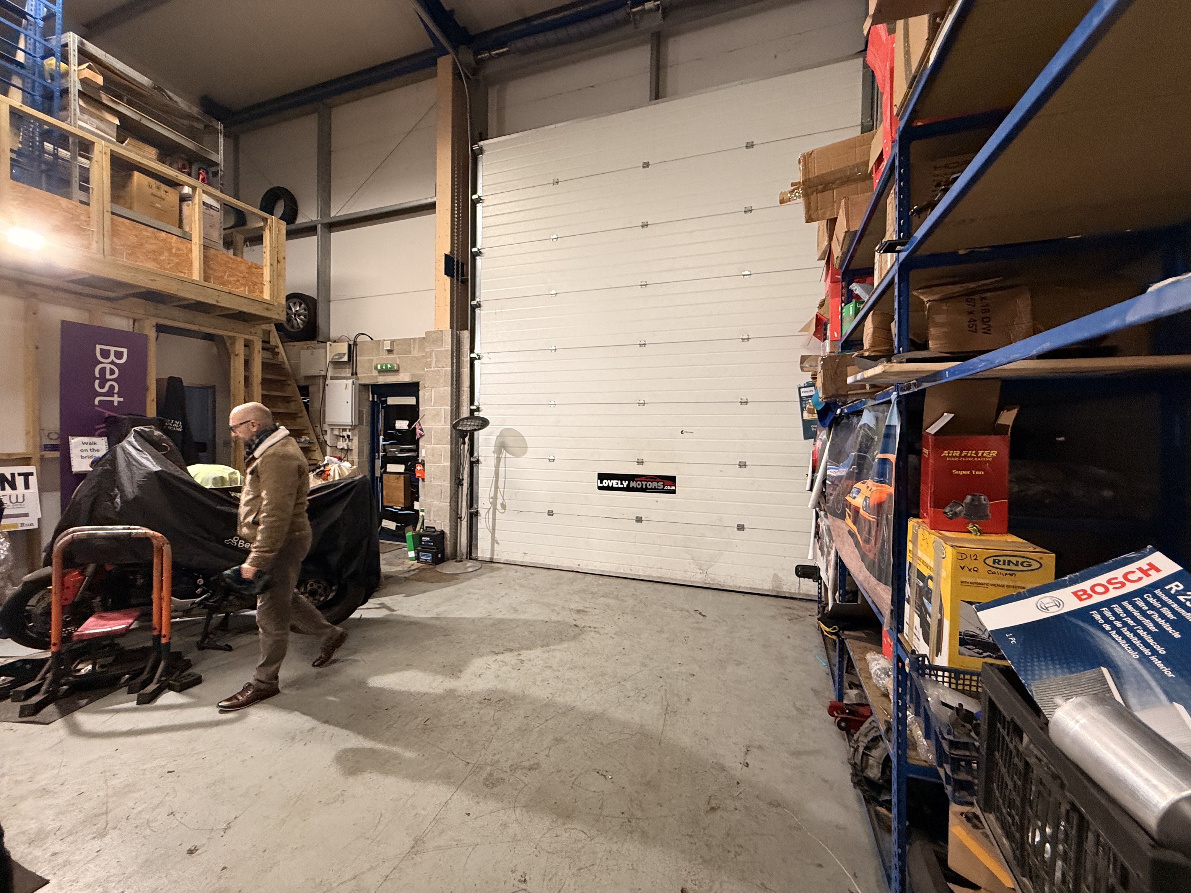 There is a small mezzanine storage area above the office: